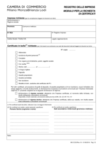 • Richiesta certificati camera di commercio